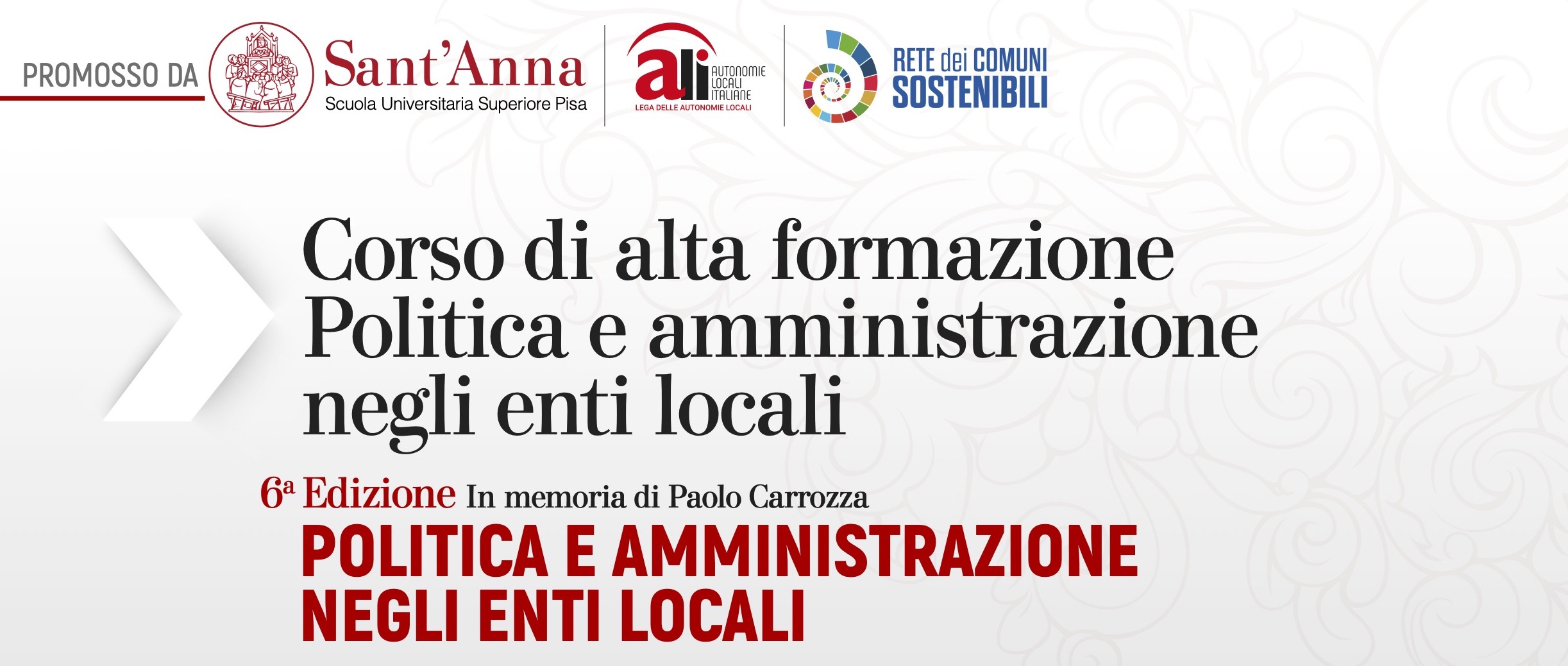 Scadranno martedì 26 aprile i termini per iscriversi alla VI edizione del Corso di Alta Formazione di politica e amministrazione promosso dalla Scuola Superiore Universitaria Sant’Anna di Pisa, Rete dei Comuni Sostenibili e ALI – Autonomie Locali Italiane.Il corso, prioritariamente destinato agli amministratori e alle...