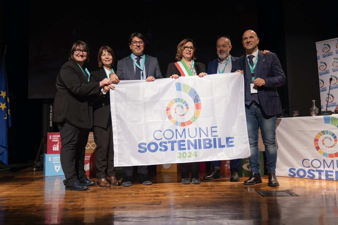 Come lo scorso anno, anche in questo 2024 la Rete ha consegnato la Bandiera Sostenibile ai comuni che hanno avviato il monitoraggio volontario con il supporto degli indicatori di sostenibilità raccogliendo dati e informazioni utili per la redazione del Rapporto di Sostenibilità.