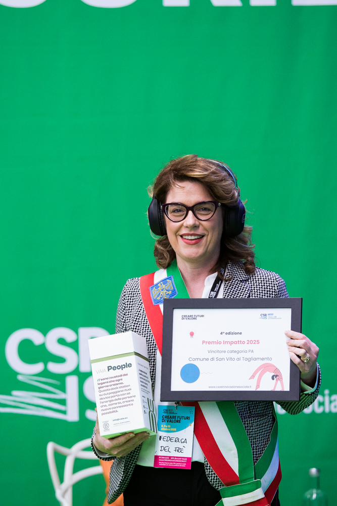 Mercoledì 8 ottobre durante il “13° Salone della CSR e dell’innovazione sociale” all’Università Bocconi a Milano, il comune di San Vito al Tagliamento è stato premiato tra i vincitori del Premio Impatto 2025 nella categoria Pubblica Amministrazione.