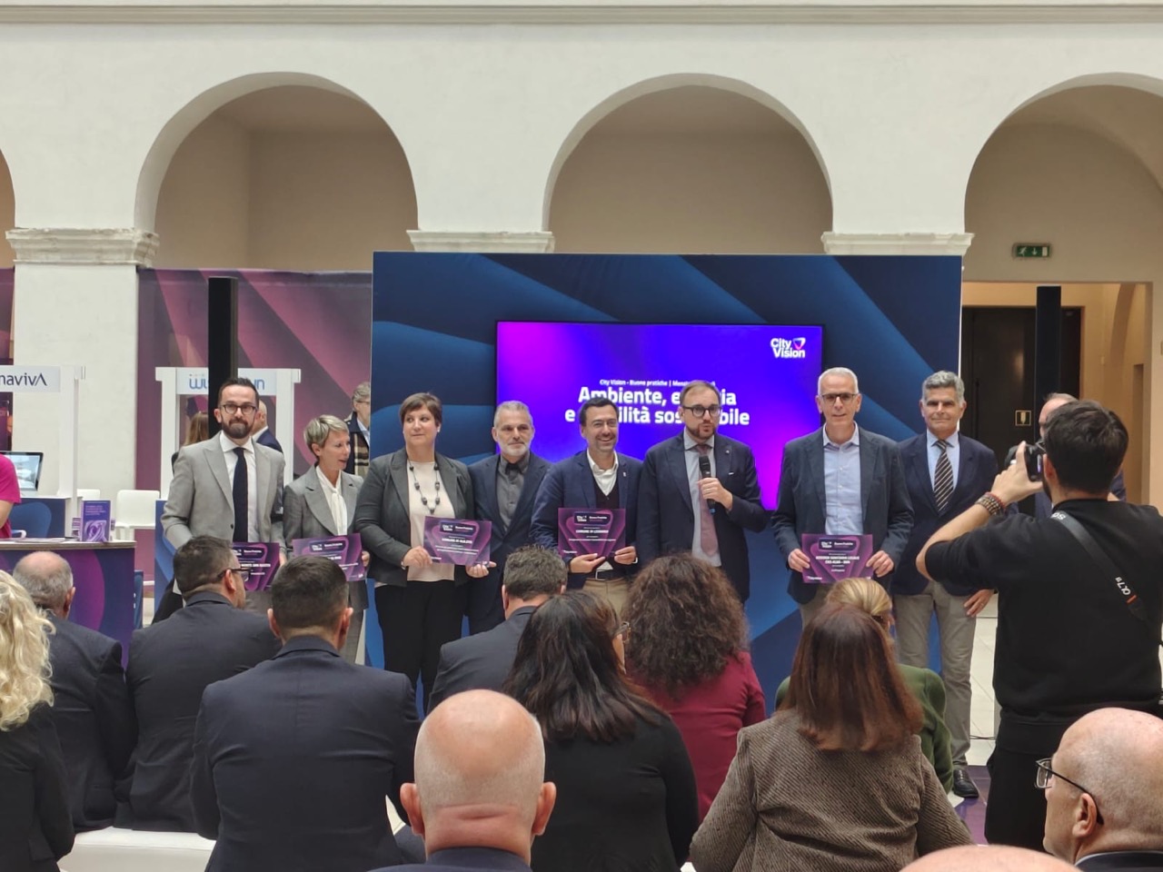 Insieme al direttore generale Giovanni Gostoli e al direttore tecnico Maurizio Gazzarri (entrambi presenti al tavolo di lavoro), la Rete dei Comuni Sostenibili è stata rappresentata al City Vision anche dal vicepresidente Alessandro Broccatelli, che è anche presidente di Leganet. In occasione della cerimonia inaugurale, Broccatelli è stato designato dall’organizzazione per premiare una buona pratica del Comune di Ferrara. Ma la Rete dei Comuni Sostenibili, di fatto, ha preso parte a ogni iniziativa e tavolo di lavoro di City Vision 2025, con amministratrici e amministratori locali di enti iscritti all’associazione che hanno portato il proprio contributo su tanti temi: dalla rigenerazione urbana al turismo sostenibile, dall’energia alla mobilità e tanto altro.