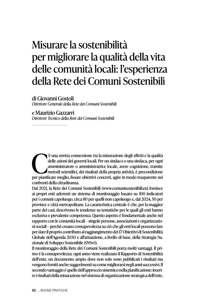 Pubblichiamo l’articolo “Misurare la sostenibilità per migliorare la qualità di vita delle comunità locali” uscito nel primo numero di Eutopica, la nuova rivista di Ali Autonomie Locali Italiane. Il numero, uscito nel giugno scorso, ha come titolo: “Città frontiera: gli avamposti alla crisi climatica” ed è stato curato da Edoardo Zanchini, Direttore ufficio clima Roma Capitale. L’articolo racconta l’esperienza della Rete dei Comuni Sostenibile ed è a doppia forma dei direttori Giovanni Gostoli e Maurizio Gazzarri. Buona lettura!