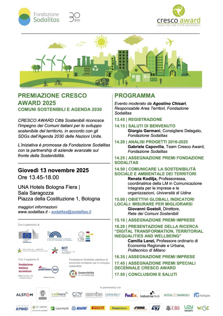 13 Nov Bologna, Premiazione Cresco Award 2025 Posted at 13:45h in by Giovanni Gostoli Data / Ora: 13 Novembre 13:45 - 18:00 Categorie: No Categorie