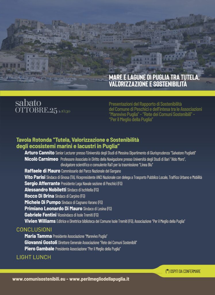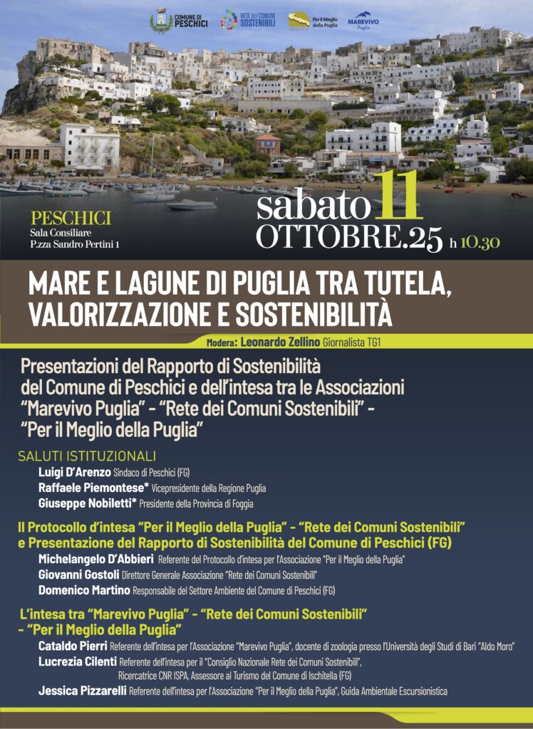 Mare e lagune di Puglia tra tutela, valorizzazione e sostenibilità. Presentazione del Rapporto di Sostenibilità del Comune di Peschici e dell’intesa tra le Associazioni Mare Vivo Puglia, Rete dei Comuni Sostenibili e Per il Meglio della Puglia.